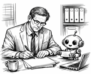 Figuur 1: Tekening van een AI, gemaakt met…AI